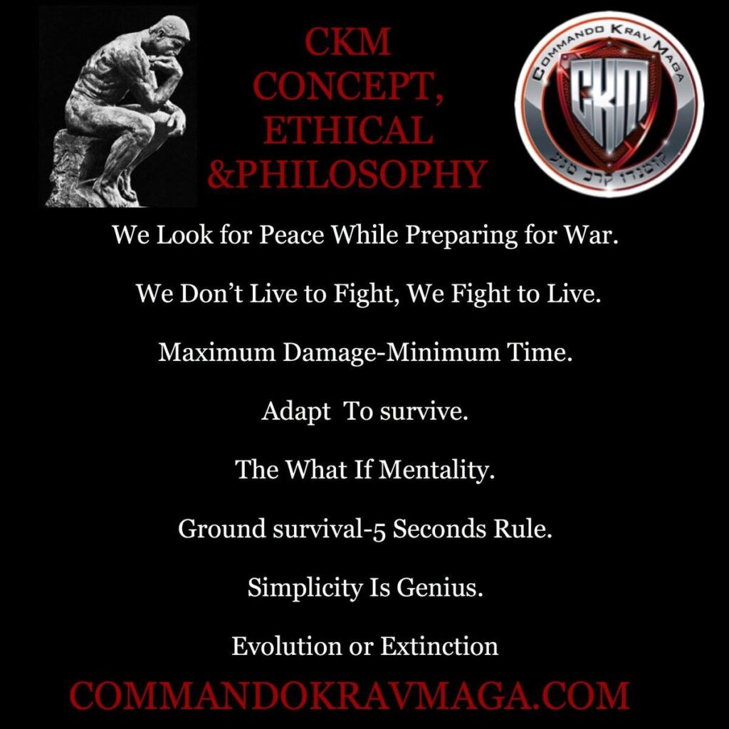 CHCESZ POKOJU SZYKUJ SIĘ DO WOJNY– CKM pomaga przygotować się do nieoczekiwanego i zawsze najpierw do pokojowego rozwiązania problemu, jako trenujący CKM jesteś zawsze przygotowany do walki. Twoja pierwszą intencją jest upewnić wszystkich że nie chcesz walczyć ale jeżeli zostaniesz zmuszony nie za wachasz się użyć swych niszczących umiejętności żeby przetrwać.